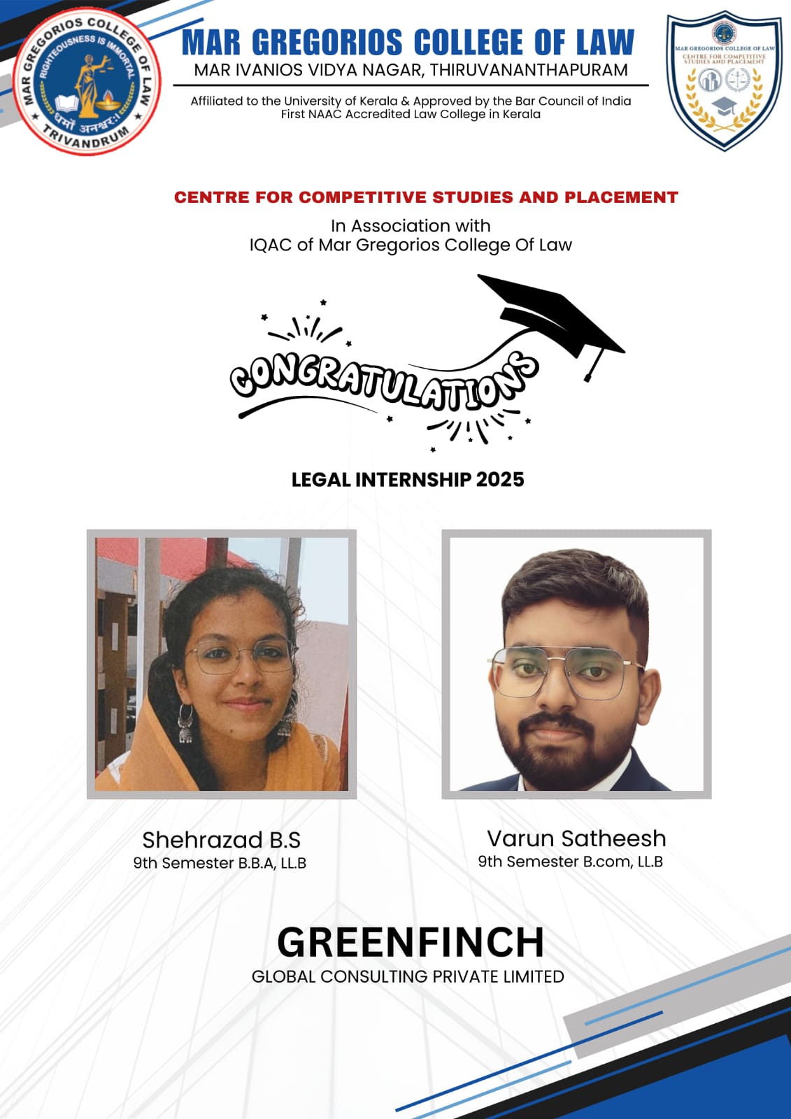 Mar Gregorios College of Law is envisioned as a centre of excellence in legal education. The college was established in 2012 as another milestone in the glorious Mar Ivanios Vidyanagar Campus which was founded in 1949 by the Servant of God Archbishop Geevarghese Mar Ivanios. The College of Law has been named "Mar Gregorios College of Law” in commemoration of Archbishop Benedict Mar Gregorios who was destined to guide the destiny of the Malankara Syrian Catholic Church for more than four decades. Besides being a spiritual leader, Archbishop Benedict Mar Gregorios was a great linguist, an economist, an educationalist par excellence and above all, a profound humanist who epitomized love and compassion. It is, indeed, an honour and a privilege that this college of law has been named after such a great and noble soul who embodied in himself the eternal verities of Dharma, The Law.