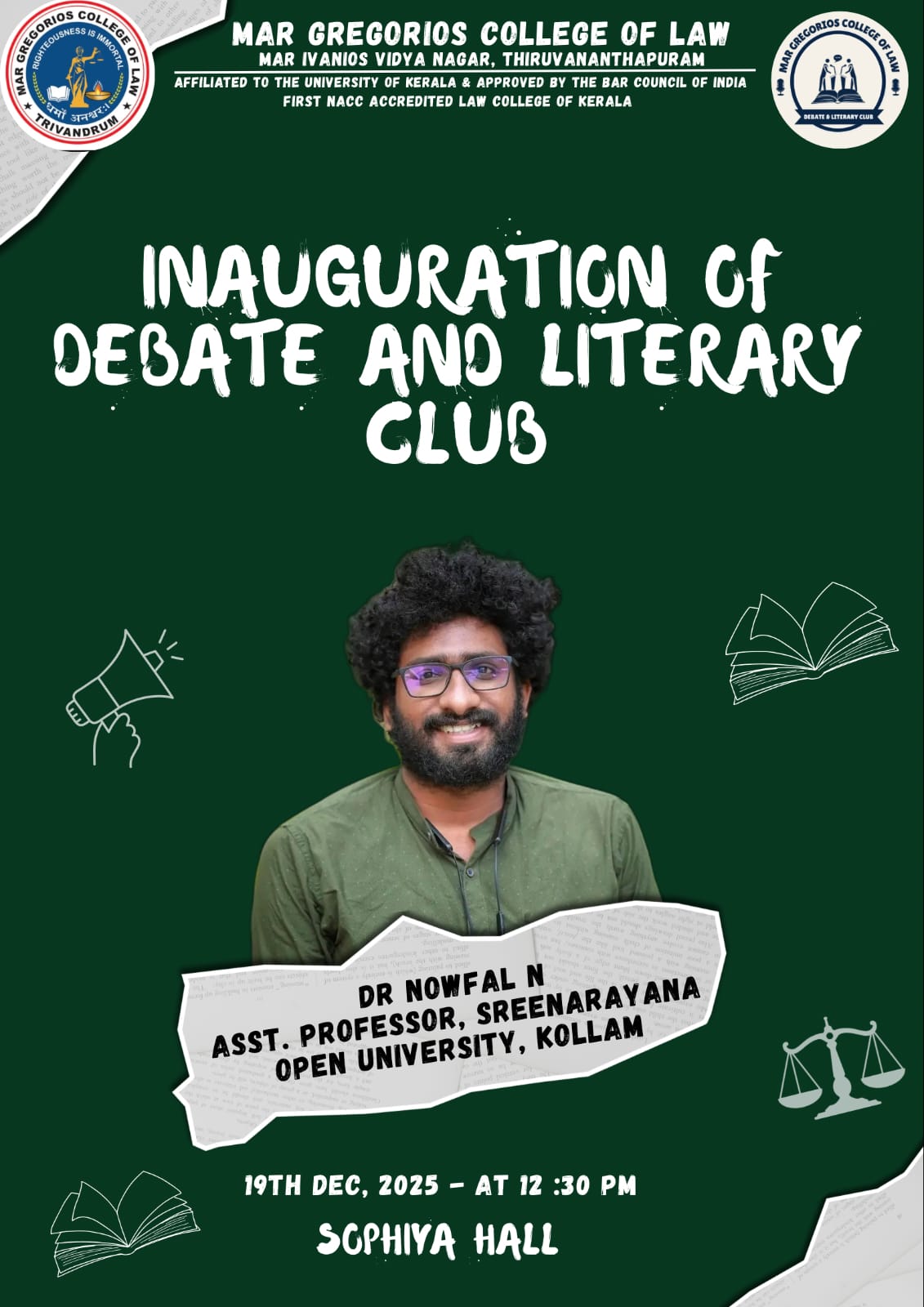 The fifth edition of Mar Gregorios College of Lecture Series has been held on 19th March 2022 at 2.30 PM. The Lecture was given by Hon'ble Mr. Justice Muhamed Mustaque, Judge, High Court of Kerala. The session was felicitated by Rt. Rev. Msgr. Dr. Varkey Attupurath, Vicar General of Major Archdiocese of Trivandrum.