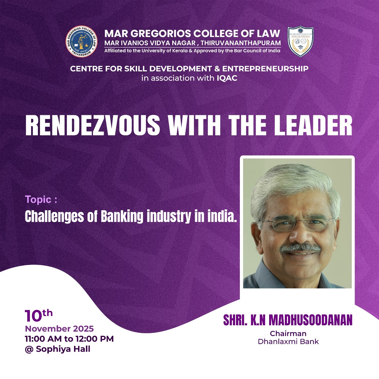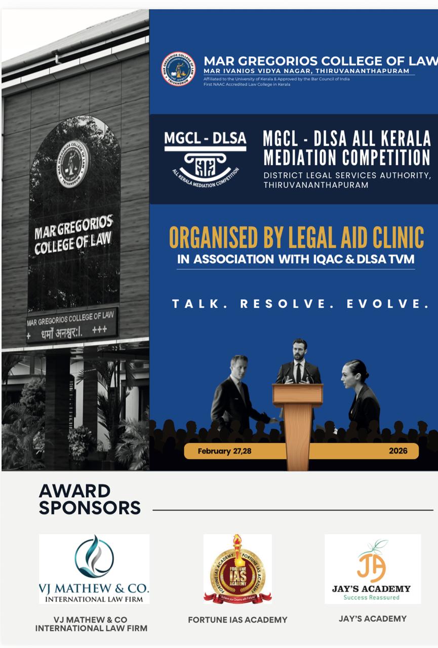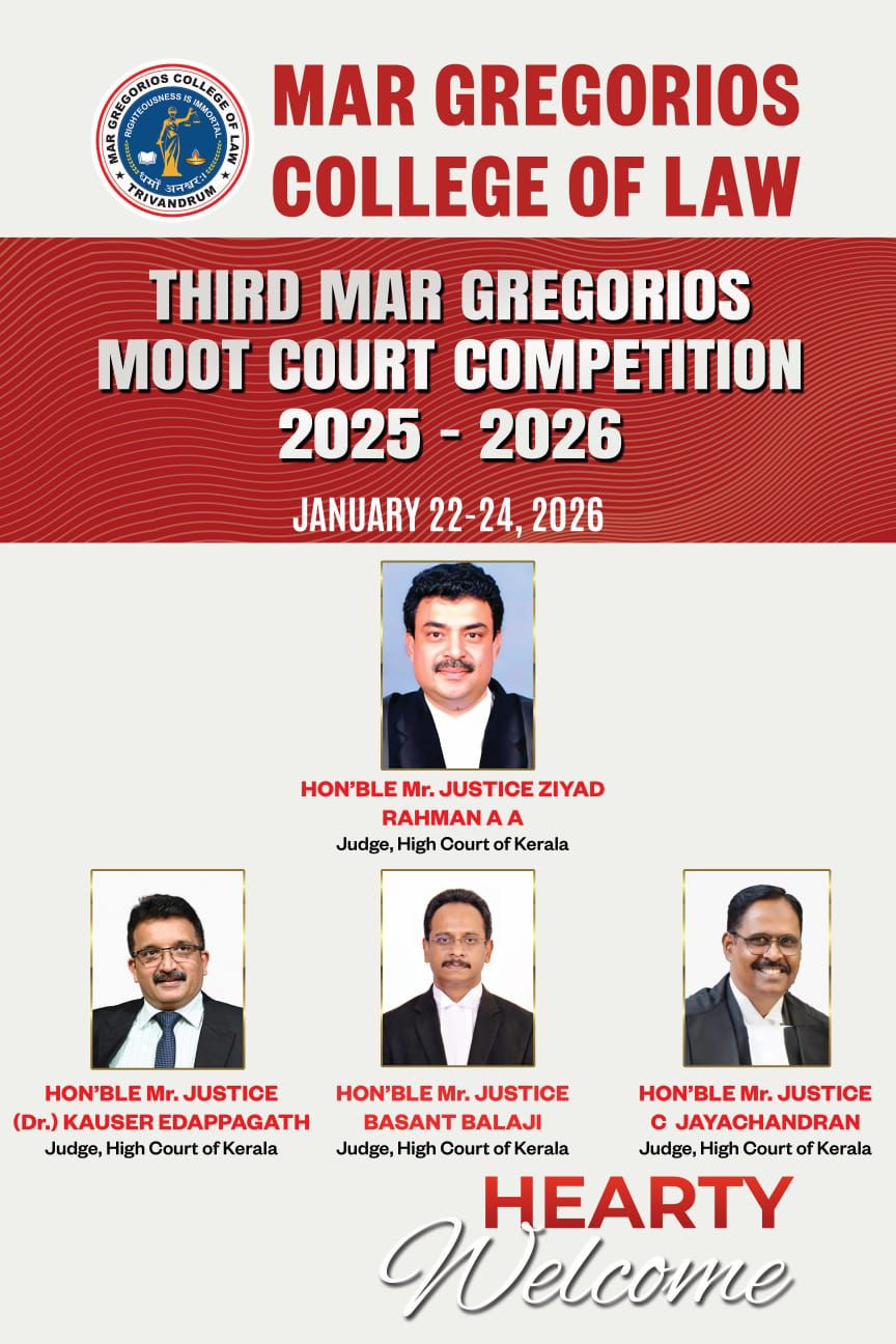 Mar Gregorios College of Law is envisioned as a centre of excellence in legal education. The college was established in 2012 as another milestone in the glorious Mar Ivanios Vidyanagar Campus which was founded in 1949 by the Servant of God Archbishop Geevarghese Mar Ivanios. The College of Law has been named "Mar Gregorios College of Law” in commemoration of Archbishop Benedict Mar Gregorios who was destined to guide the destiny of the Malankara Syrian Catholic Church for more than four decades. Besides being a spiritual leader, Archbishop Benedict Mar Gregorios was a great linguist, an economist, an educationalist par excellence and above all, a profound humanist who epitomized love and compassion. It is, indeed, an honour and a privilege that this college of law has been named after such a great and noble soul who embodied in himself the eternal verities of Dharma, The Law.