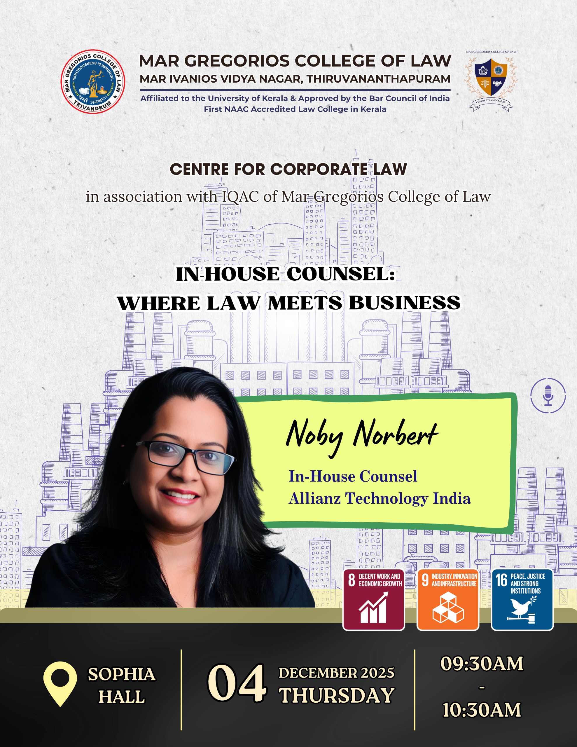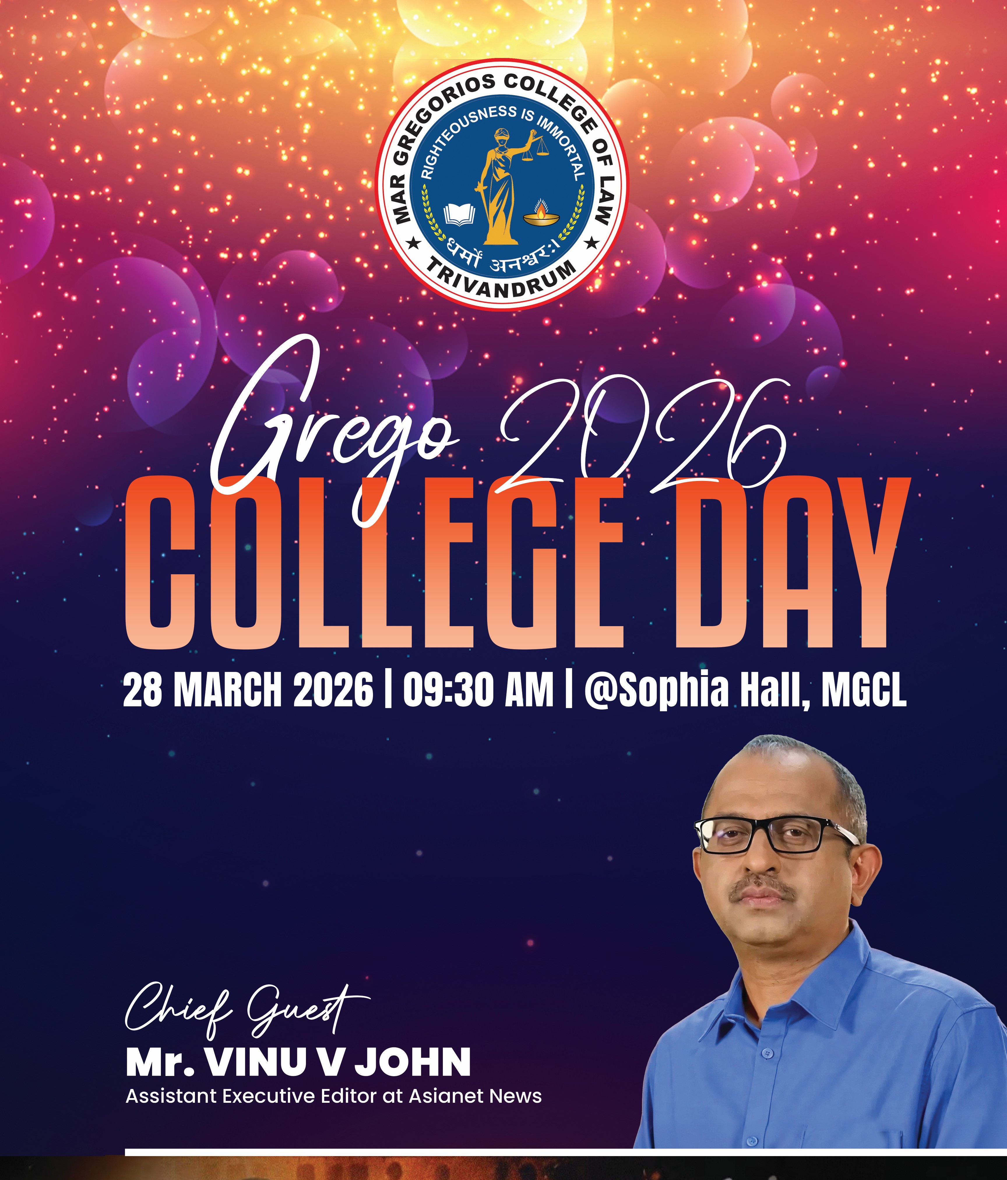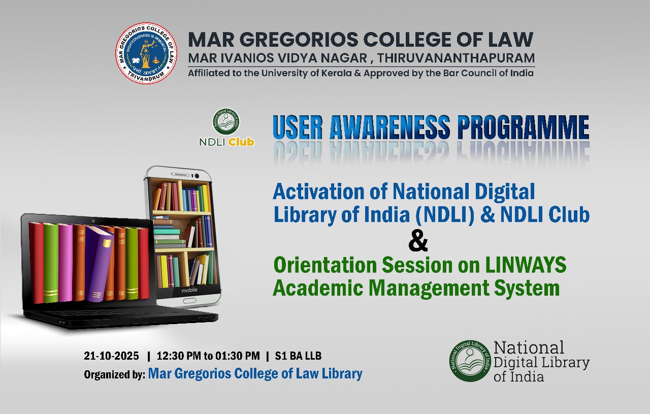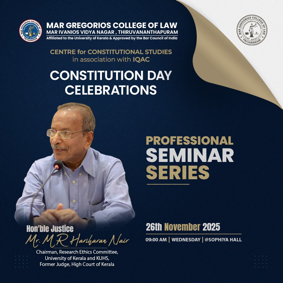 Mar Gregorios College of Law is envisioned as a centre of excellence in legal education. The college was established in 2012 as another milestone in the glorious Mar Ivanios Vidyanagar Campus which was founded in 1949 by the Servant of God Archbishop Geevarghese Mar Ivanios. The College of Law has been named "Mar Gregorios College of Law” in commemoration of Archbishop Benedict Mar Gregorios who was destined to guide the destiny of the Malankara Syrian Catholic Church for more than four decades. Besides being a spiritual leader, Archbishop Benedict Mar Gregorios was a great linguist, an economist, an educationalist par excellence and above all, a profound humanist who epitomized love and compassion. It is, indeed, an honour and a privilege that this college of law has been named after such a great and noble soul who embodied in himself the eternal verities of Dharma, The Law.